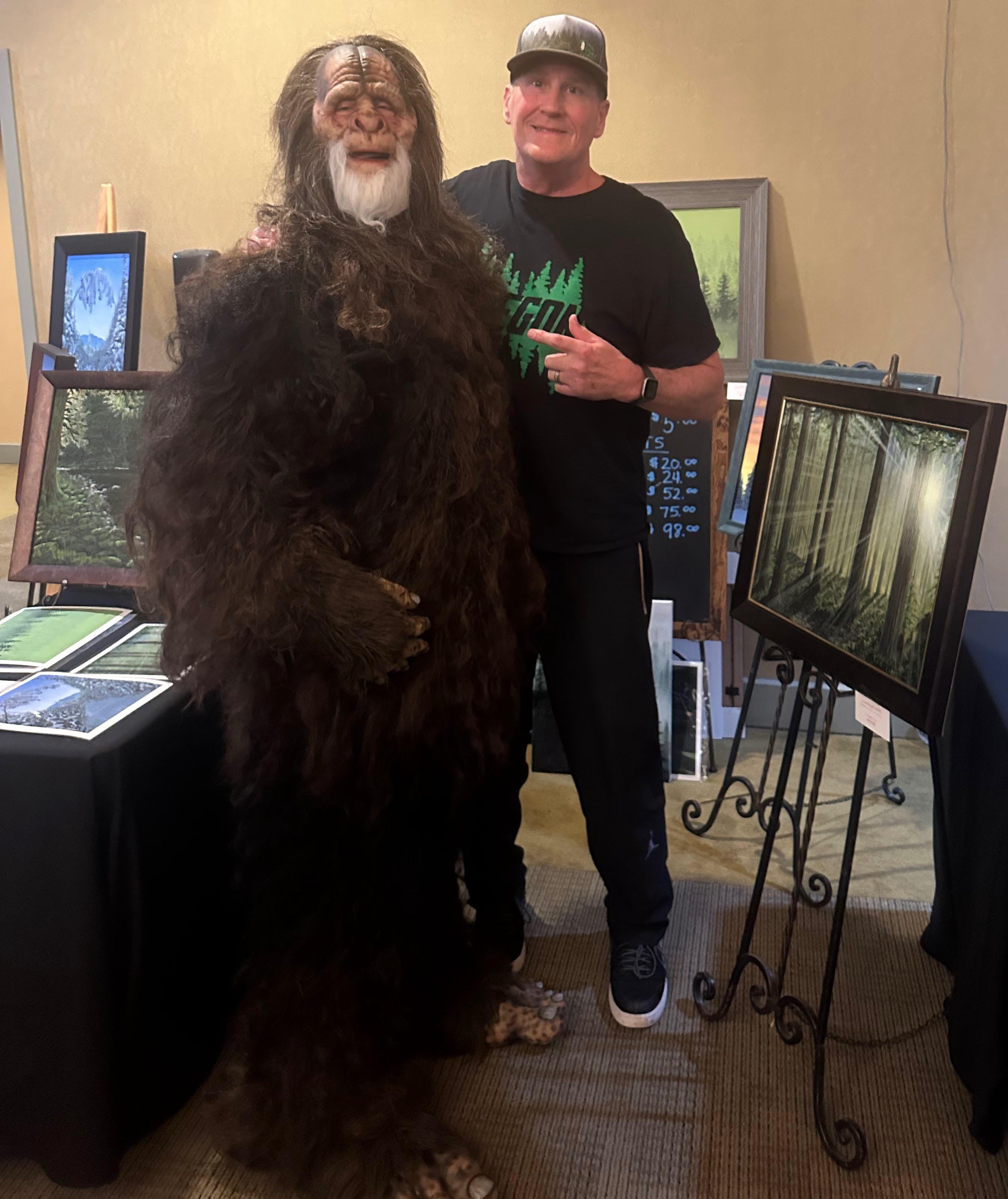 This collection was born from a simple idea: “You should hide a Bigfoot in your painting.” One suggestion turned into a series—beginning with a snowy forest scene where I thought, why not hide four? Maybe a whole family.